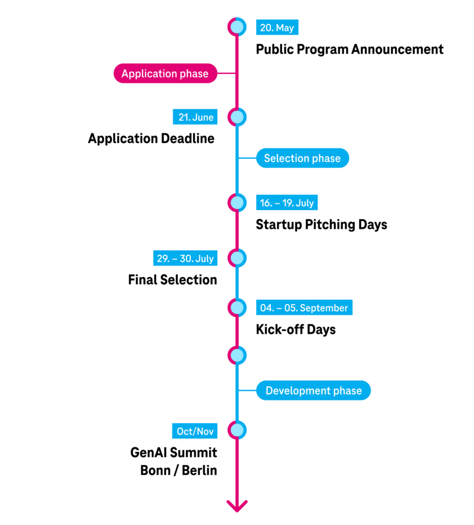 Unlock the potential of your AI startup with Telekom hubraum’s AI Co-Creation Program – an initiative designed to connect, empower, and propel AI innovators with valuable business contacts and funding. In the era of limitless AI possibilities, our program offers business opportunities, mentoring and a community for AI startups.