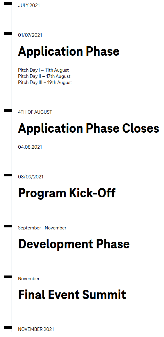 Application Deadline closed on 4th August. You can still apply for a last chance Wildcard Pitch.